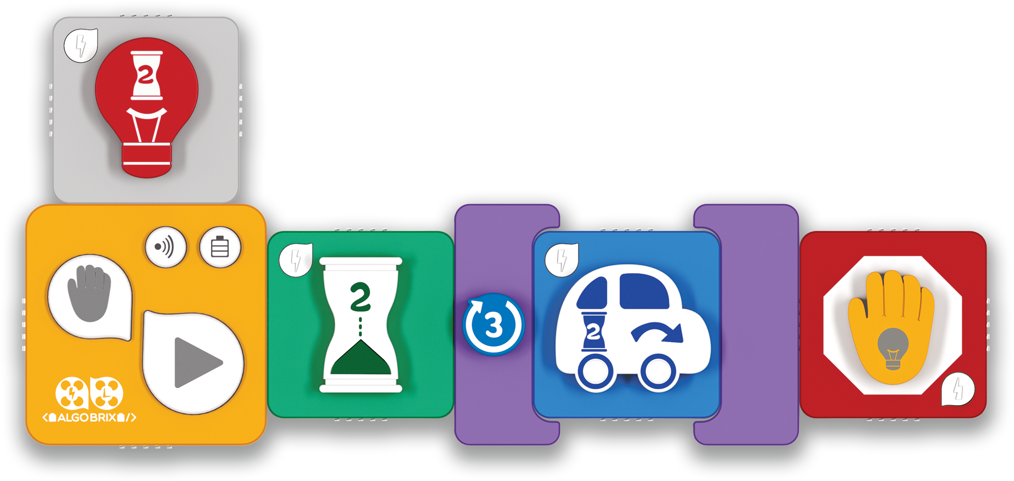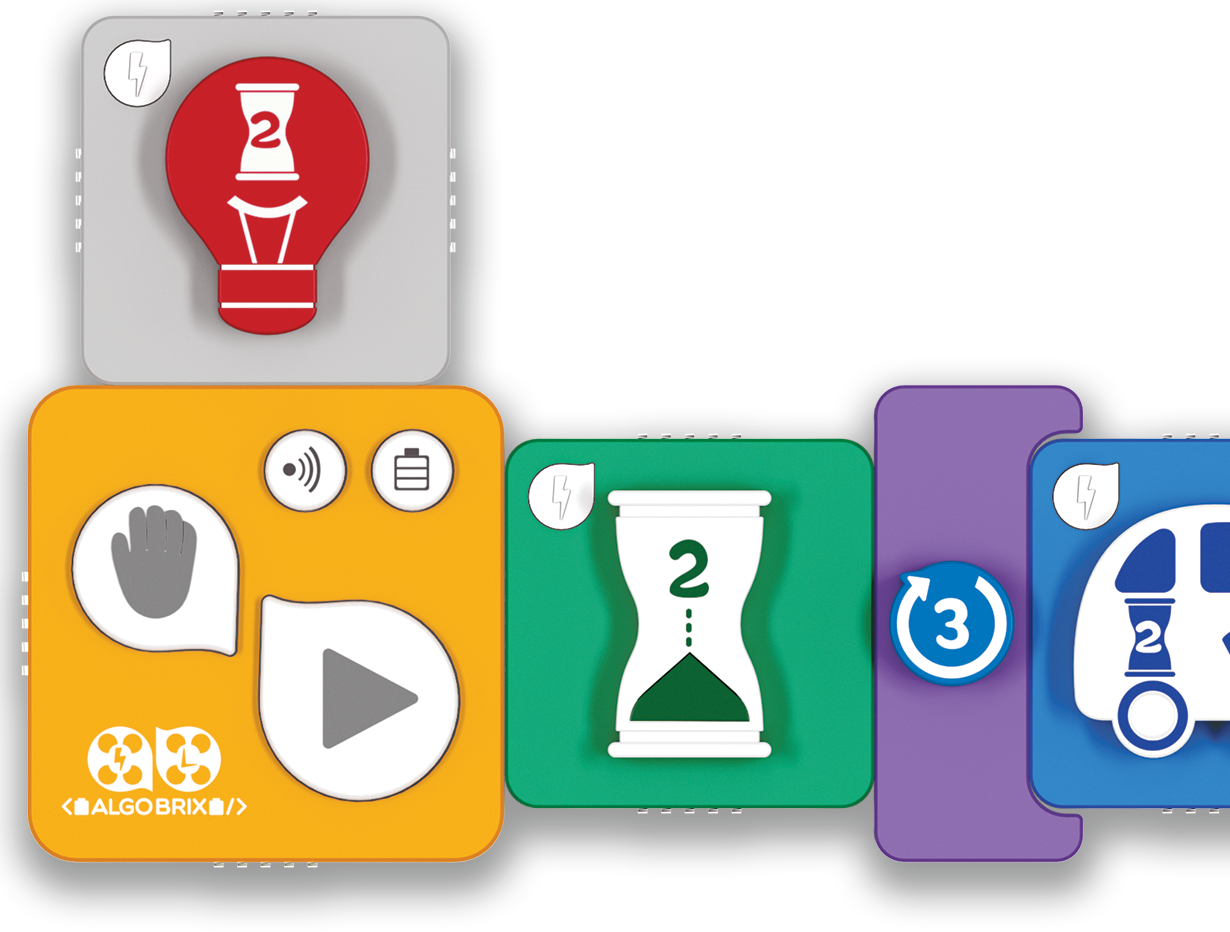 ajutorul limbajului de codare tangibil al Algobrix®, studenții încep prin construirea unui model